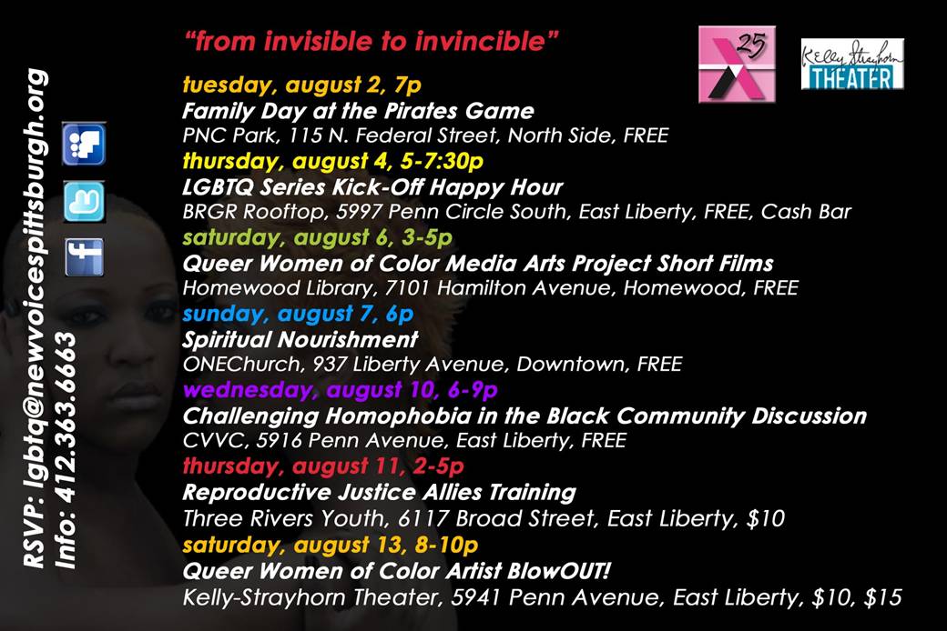New Voices Pittsburgh is a wonderful local group doing awesome work and seeing the bigger picture in a way few other organizations do. I received this image in an email from the Three Rivers Community Fund, but thought my readers may be interested, so here is the image which lists some upcoming events. I’m in San Diego for work, or else you would see me at BRGR on August 4!